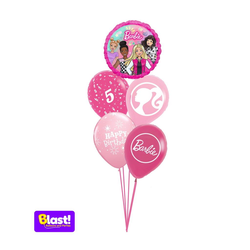 Features a foil balloon with Barbie and freinds and 4 co-ordinating pink latex balloons.