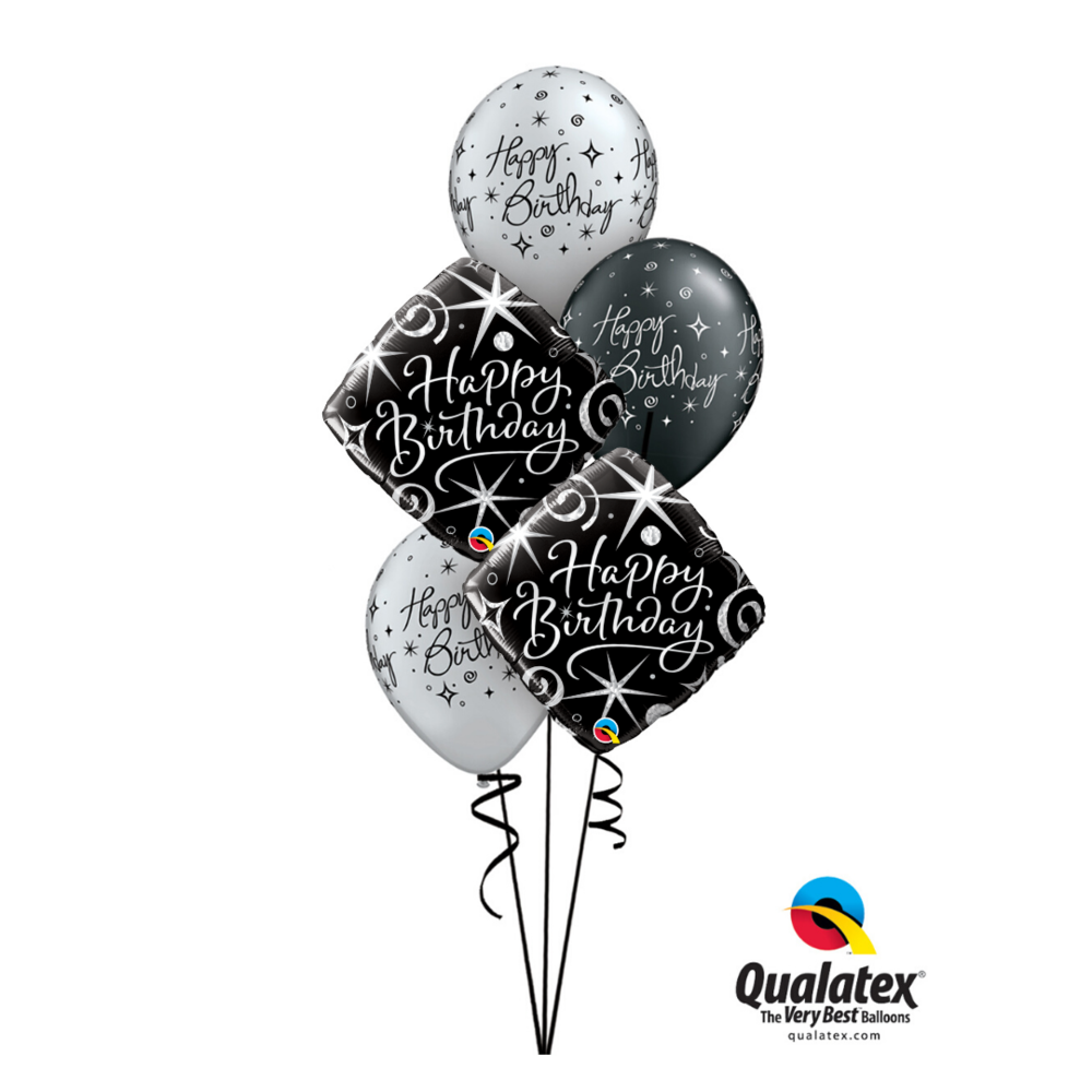 Celebrate their milestone birthday in style with our elegant black and silver balloon bouquet - perfect for adding a touch of glamour and sophistication to their special day.